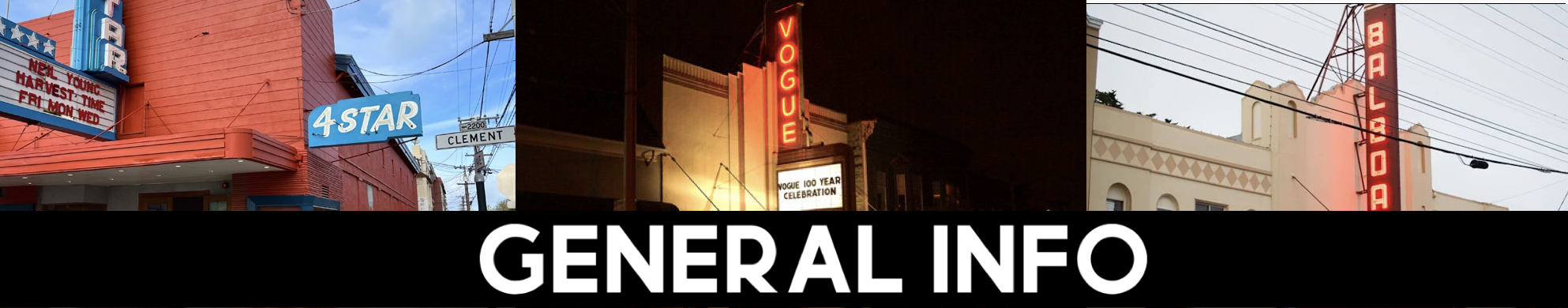 The marquees at all three cinemas can be rented for $250 a side (two lines for the Vogue and 4-Star, one line for Balboa).